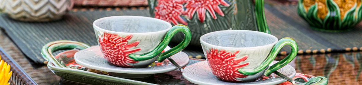 Tách trà thương hiệu BORDALLO và VISTA ALEGRE có hoa văn nhẹ nhàng, thanh nhã với chi tiết bông hoa làm điểm nhấn vừa phải. Một bộ ấm tách tạo nên sự sang trọng quý phái mà vẫn nhẹ nhàng, thích hợp trong một không gian sang trọng hay là một món quà đầy ý nghĩa với bạn bè, đối tác hay người thân.
