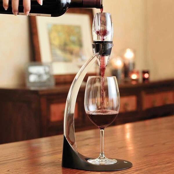 Tháp rót rượu vang Vinturi giúp rượu được thở trong vòng 30 giây để tăng hương thơm và mùi vị trước khi thưởng thức.